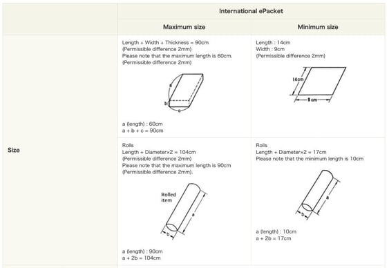 Another example for illustrating international ePacket size from Japan Post.