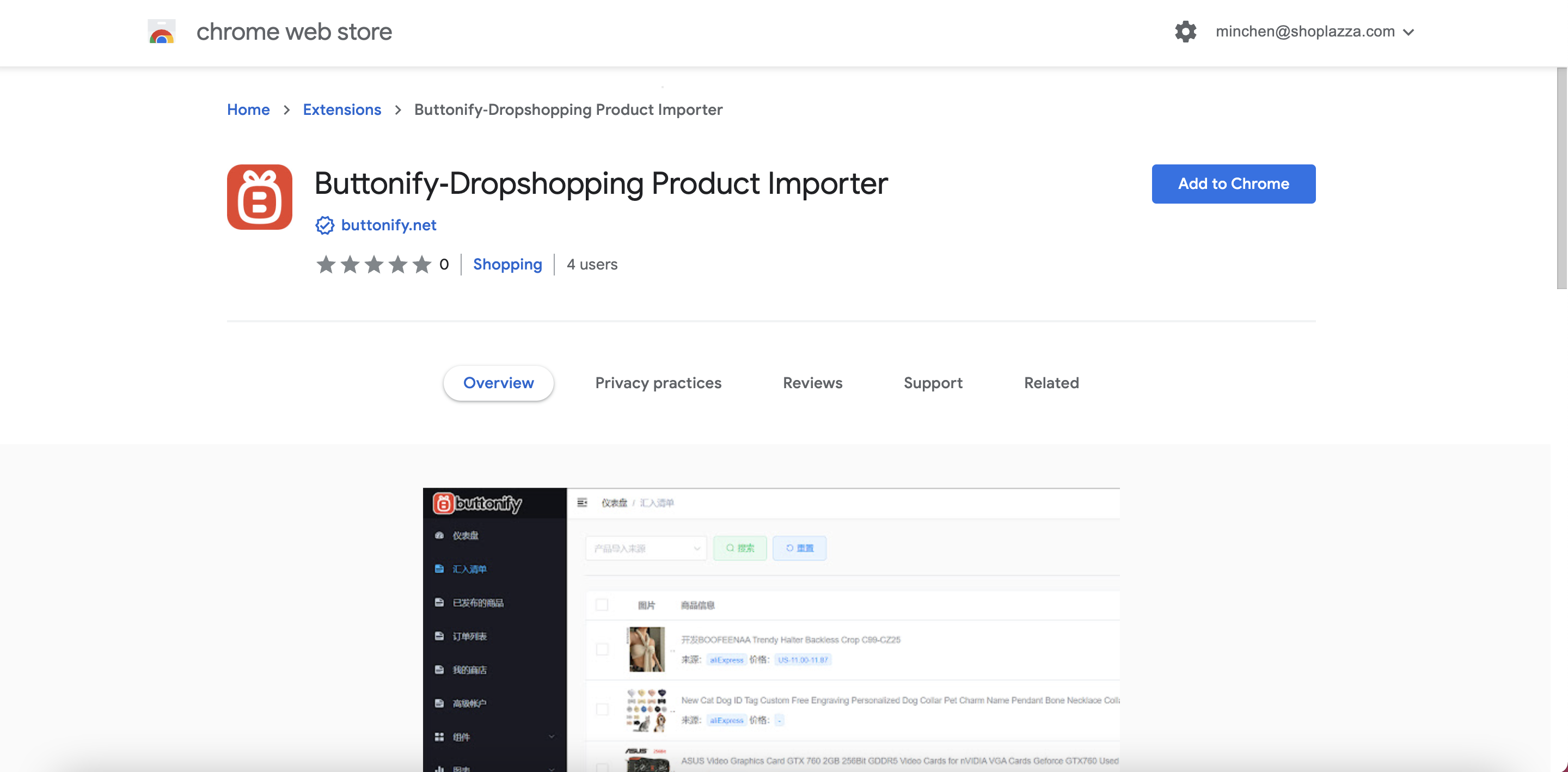 Use the Buttonify Chrome extension to search for and collect products from Aliexpress. Go to the Google application market to search for the Buttonify app and install the buttonify Chrome extension.