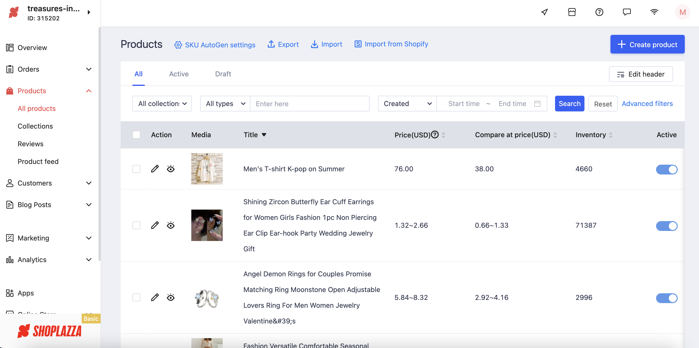 Here is how it looked after importing your products from Buttonify to Shoplazza.