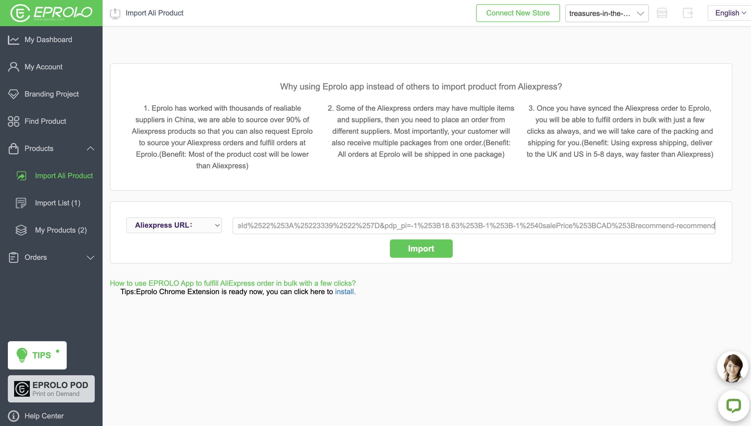 With EPROLO, you can also easily import products from AliExpress and put them in your store.