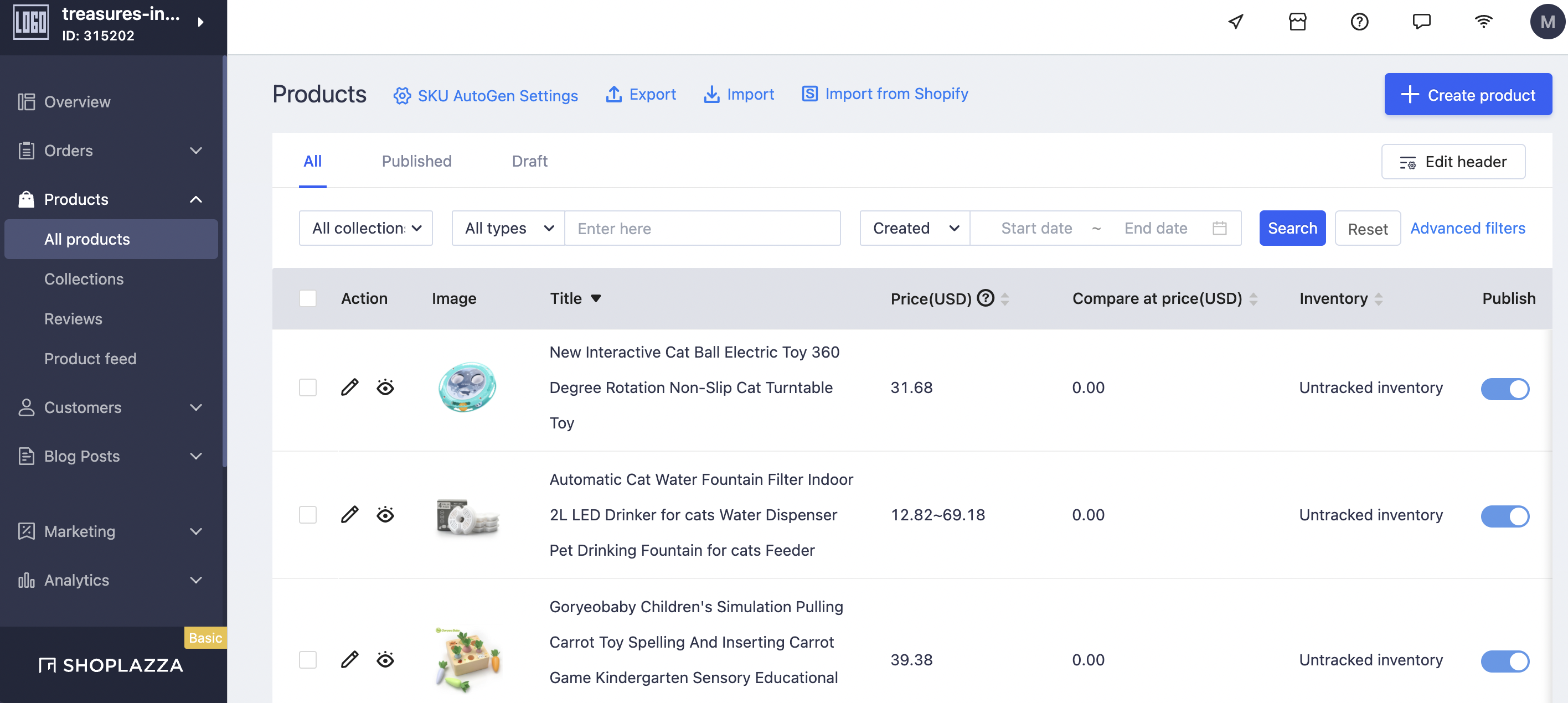 In your Shoplazza product pages, you can find that these products are synced immediately.