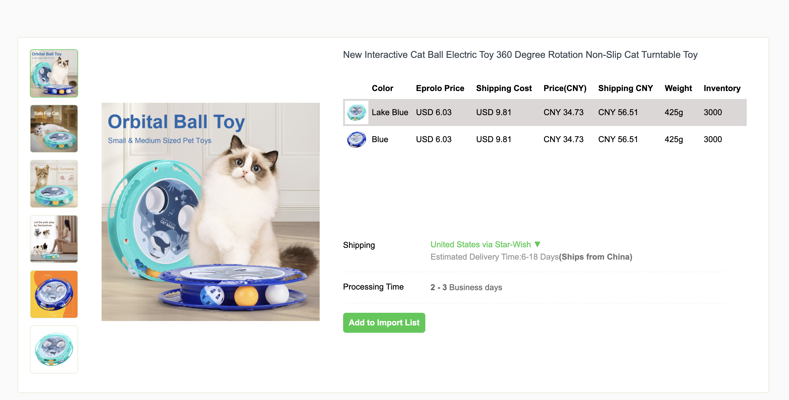 Once you locate a product you wish to sell in your store, simply click the “Add to Import List” tab, and the selected product will be automatically added to your import list.